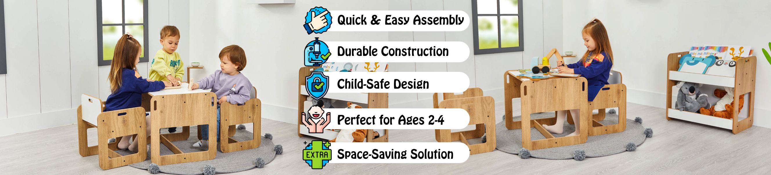 • Phoenix Play Table & Chairs for Kids (Ages 2 - 4) - Montessori Kids Furniture | Jerenss