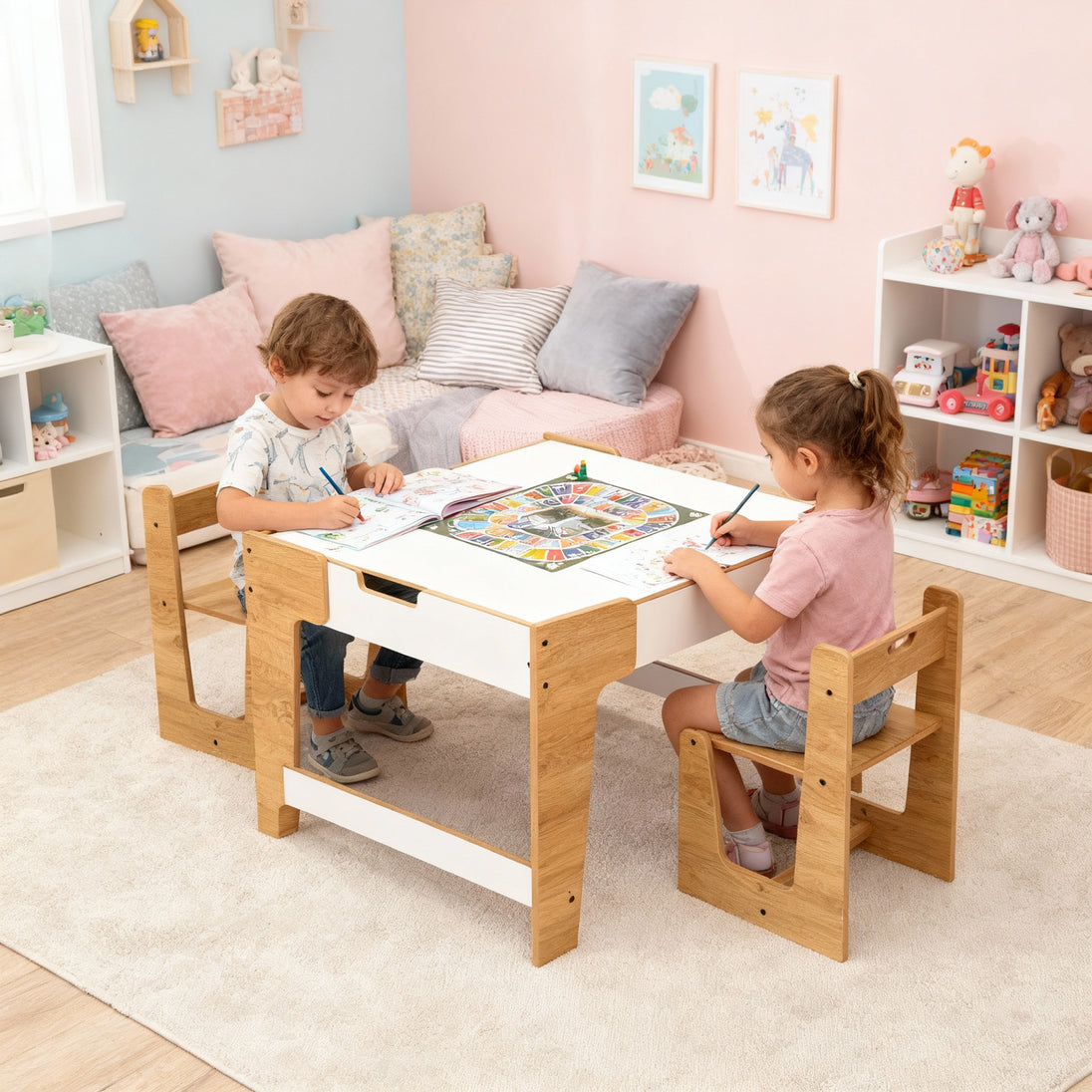 Thank you for your positive review of our Charming Dove Activity Table & Chair Set! We are so glad to hear that you appreciate the safety and sturdiness of our product, as well as its easy-to-clean design and elegant appearance. We strive to create products that can be enjoyed by children for years to come, and we are happy to know that you can see the versatility of this set. Thank you for choosing our brand for your grandchildren.
