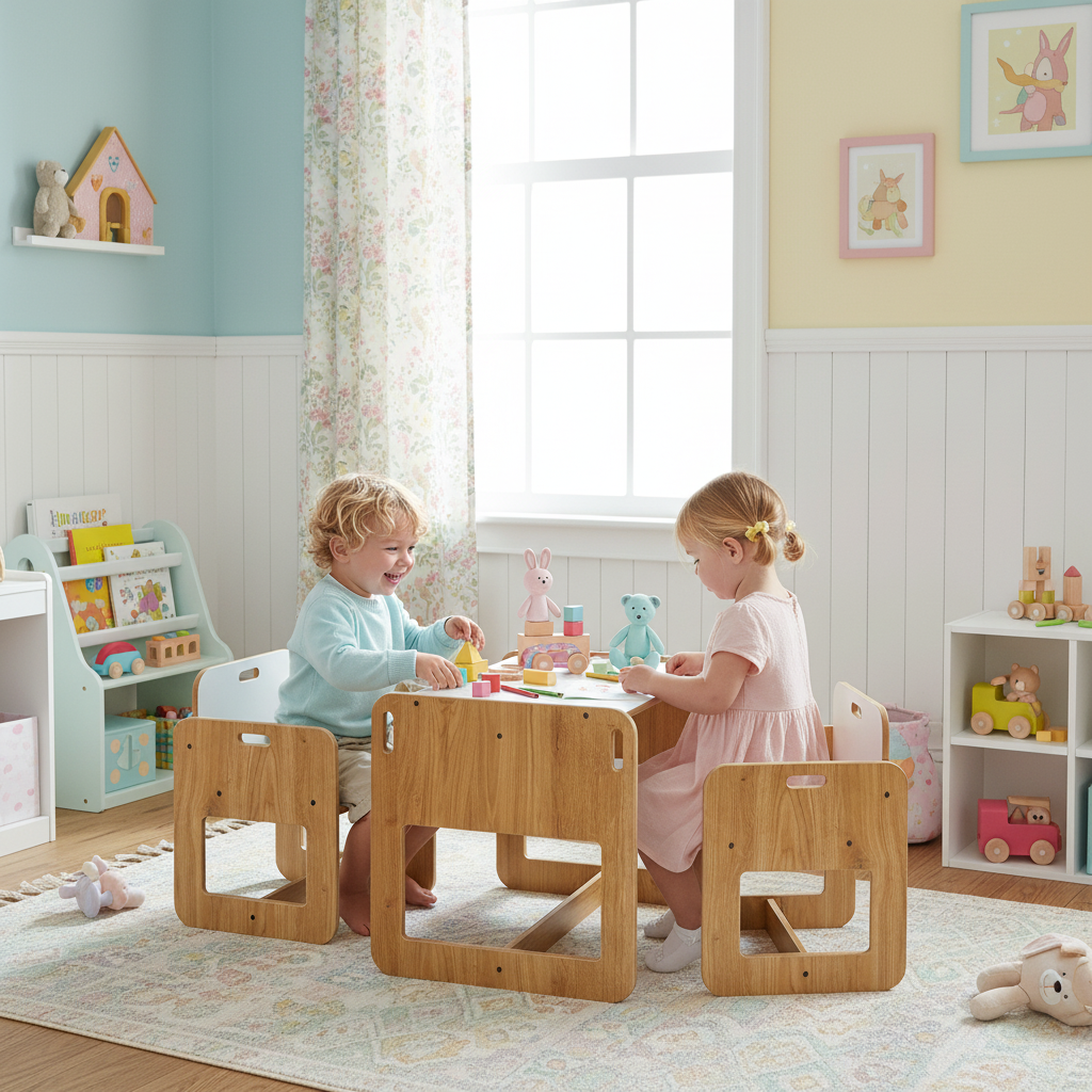 Thank you for your positive review of our Charming Dove Activity Table & Chair Set! We are so glad to hear that you appreciate the safety and sturdiness of our product, as well as its easy-to-clean design and elegant appearance. We strive to create products that can be enjoyed by children for years to come, and we are happy to know that you can see the versatility of this set. Thank you for choosing our brand for your grandchildren.